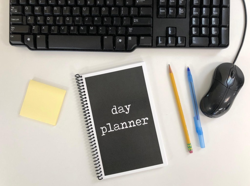 First item needed: A clean design. No flashy pictures, no distracting text that could may spin one’s brain off onto a tangent of who knows what. Just what it is, in black and white. “Day Planner”. It is what it is, right?