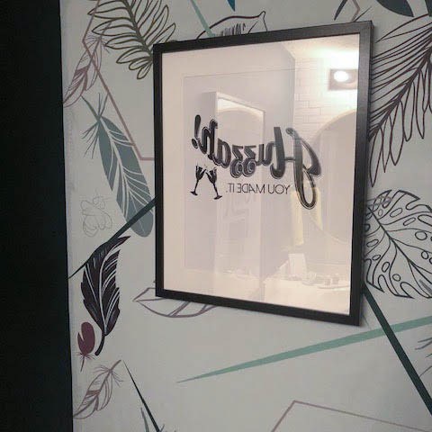 Why backwards? When it’s reflected in the mirror, it’s turned around. Just another little fun piece to “entertain” in the bathroom.