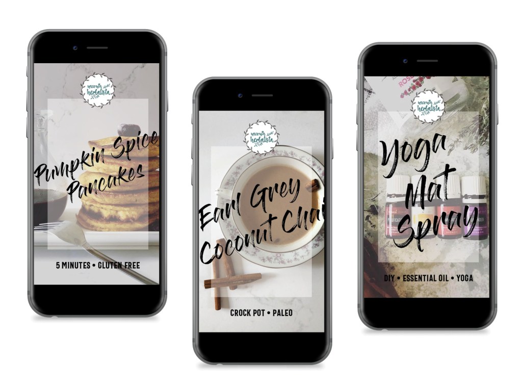Instagram stories are kept contained and organized with hand illustrated headers. This helps give viewers an easy place to search and view media and quickly find posts that lead to the website. Aromatherapy, Drinks, Food, Exercise, Herbs and Living make up each category as well as relate back to the website headers.